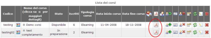 Una volta creato un modello di certificato, questo può essere associato a qualunque corso (nella sezione “gestione corsi” in amministrazione) attraverso l’apposito link: