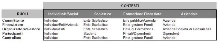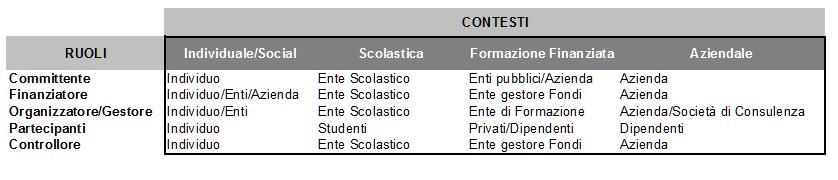 - Committente: è chi richiede l’attuazione di un progetto di formazione, definendo un obiettivo da raggiungere e spesso anche alcune “regole del gioco”.