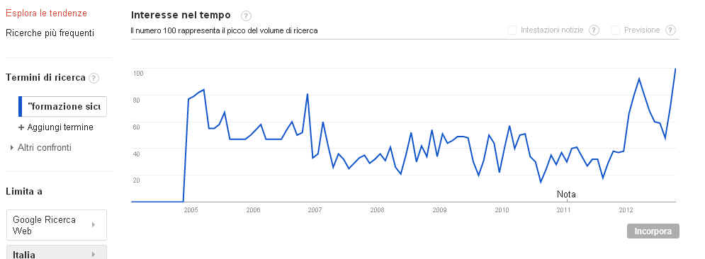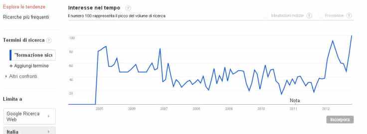 Come si vede, anche il termine “formazione sicurezza” riflette lo stesso andamento ed è “esploso” a livello di interesse proprio dopo l’accordo stato-regioni.