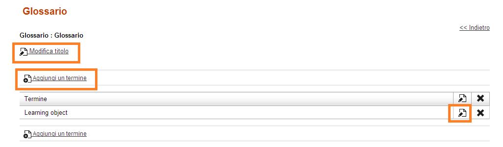 Per inserire o modificare il Glossario, cliccare sull’icona “Modifica” relativa al Glossario. (Fig. 5)