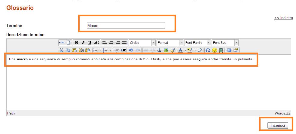 2.Modificare il Glossario