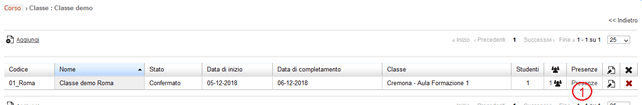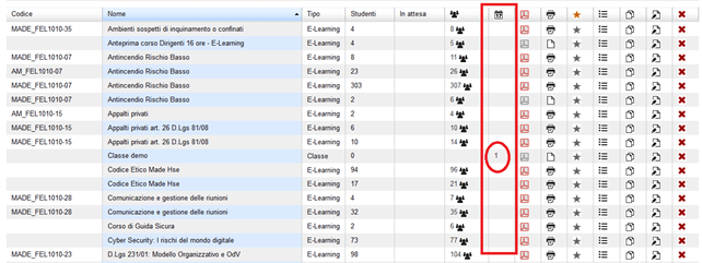 Per i corsi di tipo “Classe”, la colonna evidenziata mostrerà il numero delle edizioni disponibili per ciascun corso: