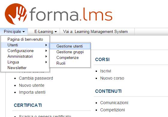 La differenza tra sospensione e cancellazione è di fondamentale importanza. Infatti eliminando un utente si andranno a rimuovere anche i suoi dati di fruizione, mentre sospendendolo l’utente non potrà far accesso alla piattaforma ma per gli amministratori sarà possibile visualizzarne l’attività didattica. Questa funzionalità è di fondamentale importanza laddove gli utenti cessino di far parte della nostra popolazione di utenti, ma si renda necessario produrre le prove dell’avvenuta formazione erogata.