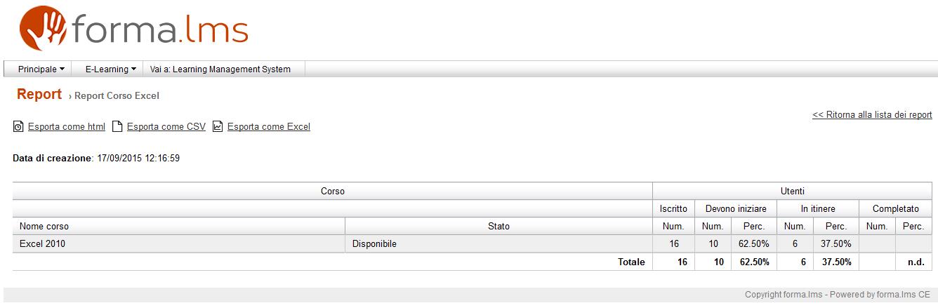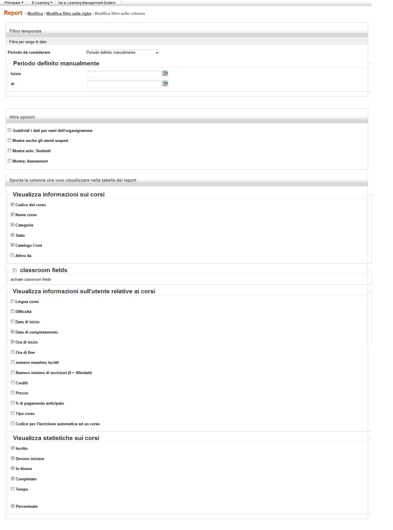 conteggiati tutti gli iscritti al corso, dovremo semplicemente mettere il check su “Report per tutti gli utenti”