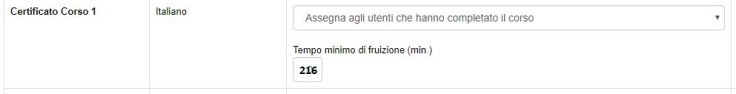 Questa funzionalità, sviluppata in passato per un nostro cliente, sarà nativamente disponibile in Forma 2. Impostando il tempo minimo necessario (in questo caso 216 minuti su 240, ossia il 90% di 4 ore) potrete assegnare il certificato solo agli utenti che hanno passato almeno il tempo necessario per legge all’interno del corso.
