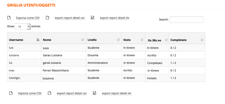 Nuova griglia utenti / oggetti