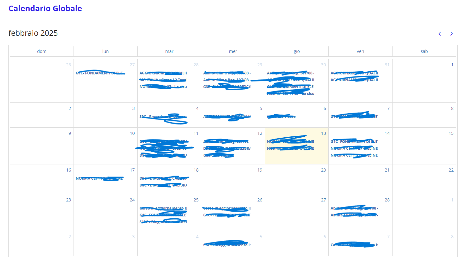 - Funzione custom di Global Calendar per la pianificazione dei corsi d’aula