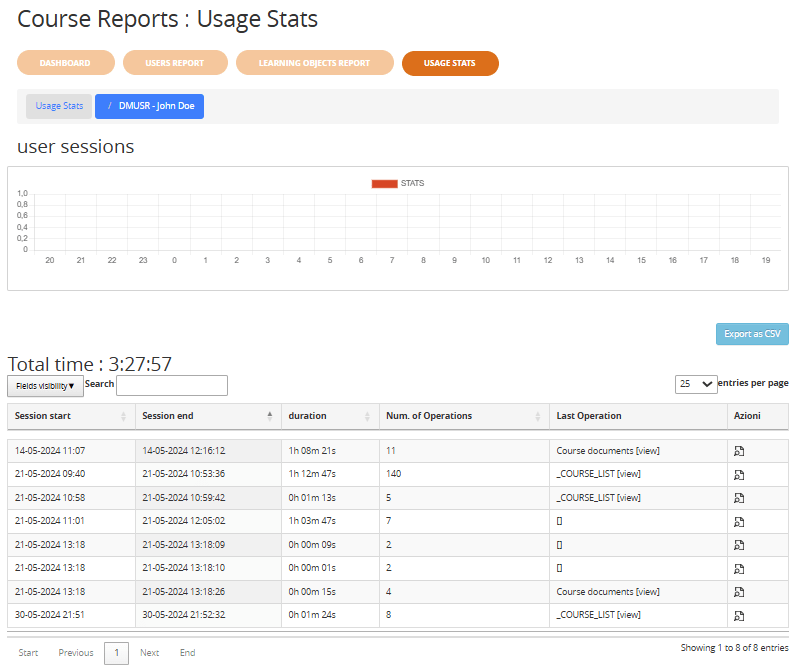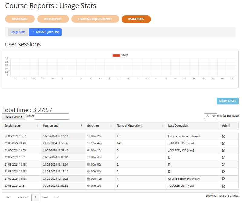 Negli anni, gli amministratori e i docenti hanno avuto a disposizione diversi strumenti per monitorare i progressi degli utenti: statistiche, tracciamenti e registri. Tuttavia, queste informazioni risultavano spesso frammentate e non sempre facili da consultare e interpretare. Con il nuovo modulo “Report del Corso”, tutto viene centralizzato in un’unica interfaccia, più chiara e completa che porta diversi vantaggi: