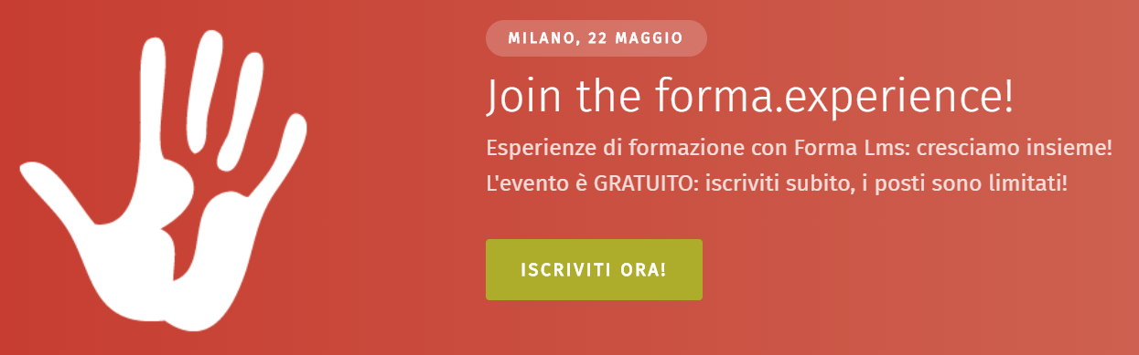 Un evento gratuito dedicato ai soci di forma.association, agli utilizzatori, agli sviluppatori e agli amministratori di Forma Lms Continua a leggere “Join the forma.experience! Evento gratuito a Milano”
